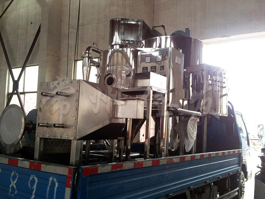 該機彩全封閉形式,所有部件均彩不銹鋼制造,配有三極凈化裝置,過濾后的空氣達十萬級要求。簡體與頂部裝有冷壁裝置,使壁溫<80攝氏度,干燥塔內裝有氣刷掃塔裝置,經該機干燥后的中藥浸膏粉,不會出現焦化變質現象,大大嗇了收粉率(達95%以上),而且不會產生混藥現象和粘壁現象。