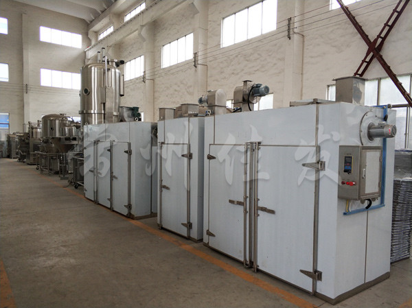 Project specifications | Each drying amount(kg) | Allocated power(kw) | Steam consumption(kg/h) | Heat dissipation area(m2) | Air volume(m3/h) | Temperature difference between upper and lower parts(℃) | Equipped with baking tray | Wide overall dimensions × depth × high(mm) | Supporting drying truck |
